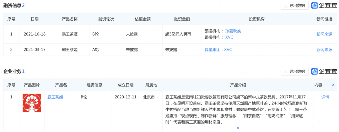 而這也得益于霸王茶姬背后的資本作支撐,在2020年獲得復(fù)星集團(tuán)、XVC等機(jī)構(gòu)的天使輪投資,又在2021年先后收獲A輪、B輪數(shù)億量級(jí)的融資,讓此前略顯低調(diào)的霸王茶姬在這兩年內(nèi)門店數(shù)量井噴,品牌知名度快速大漲。