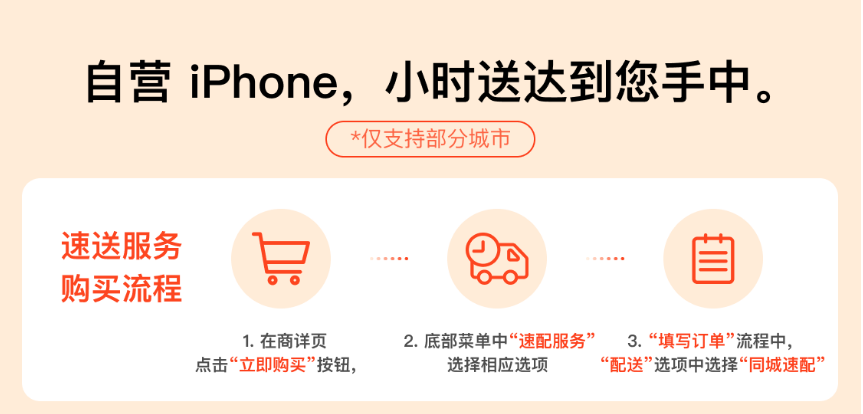 5月20日,Apple產(chǎn)品京東自營旗艦店全新上線“小時(shí)購”模式,消費(fèi)者在京東下單購買自營iPhone產(chǎn)品時(shí)可以選擇同城配送,1小時(shí)就可以收到包括iPhone新機(jī)在內(nèi)的正品Apple產(chǎn)品。