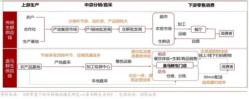 轉(zhuǎn)化率方面,盒馬從生產(chǎn)到消費(fèi)的鏈路通暢且高效,對(duì)于消費(fèi)趨勢(shì)的掌握更加有利。