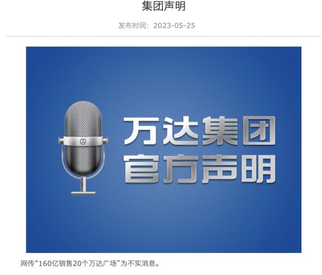 萬達(dá):網(wǎng)傳“160億銷售20個萬達(dá)廣場”為不實消息