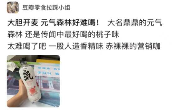 而從各大平臺消費者的反饋來看,含有代糖的氣泡水實際上并沒有那么清爽,喝完過后口腔內(nèi)的代糖甜味仍然久久不能散去,更重要的是難喝。