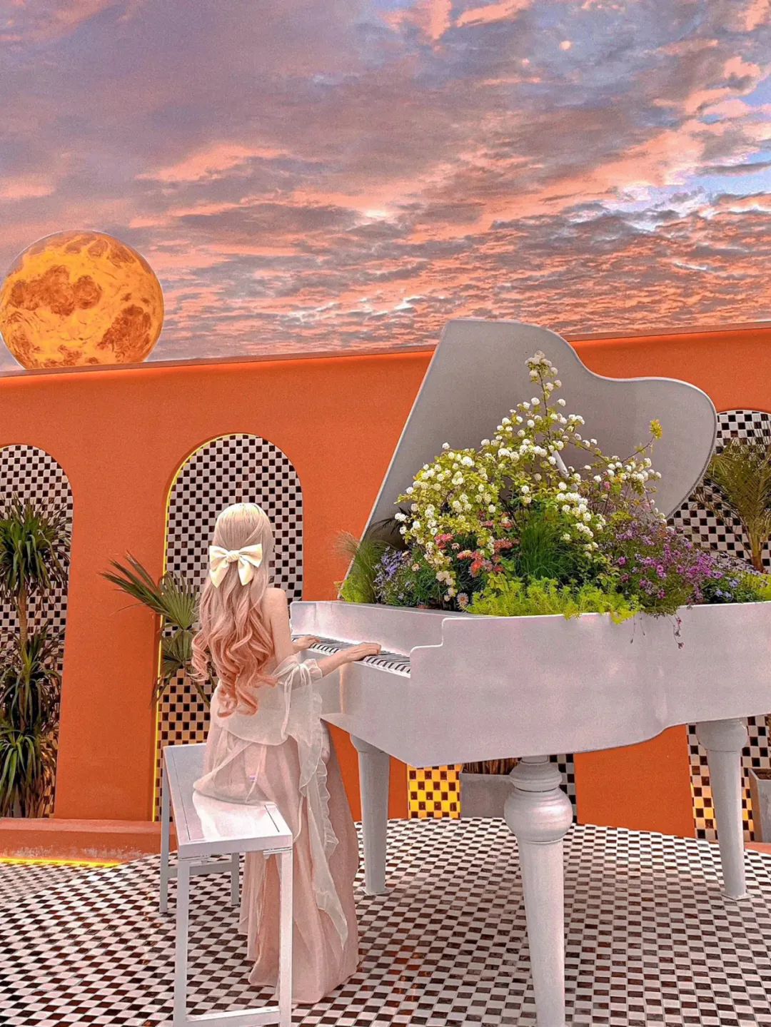 不僅如此,整個露臺就餐區(qū),還設(shè)有“水上鋼琴”“露天泳池”“酒吧吧臺”“演藝舞臺”,每一處都讓顧客有驚喜感,也讓他們有發(fā)圈和社交打卡曬攻略的沖動。