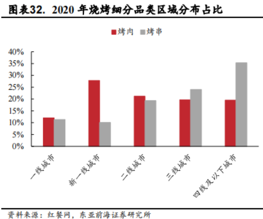 和烤串對比,在低線城市,其實(shí)烤肉的占比并沒有烤串那么多。