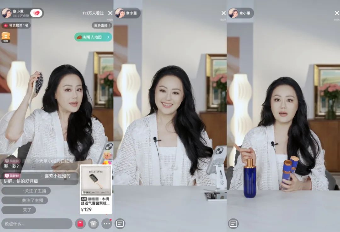 當(dāng)晚,59歲的章小蕙身著vintage Chanel白色套裝,用一品一故事的方式,霸住小紅書帶貨榜第一的位置。