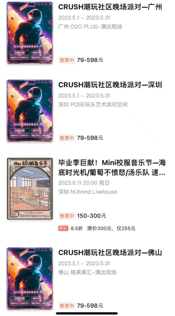 從今年3月開(kāi)始,每個(gè)月都有三十多場(chǎng)音樂(lè)節(jié)活動(dòng)。今年2到3月份,大麥平臺(tái)上在售的音樂(lè)節(jié)超過(guò)100個(gè),演出合計(jì)超290場(chǎng),票房規(guī)模與2019年同期相比提升了11倍,購(gòu)票人次同比提升了9倍。