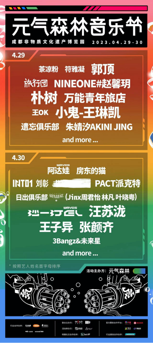 值得注意的是,一些消費(fèi)品品牌也親自下場(chǎng)搞起了“跨界”音樂(lè)節(jié)。五一假期期間,元?dú)馍盅?qǐng)了樸樹(shù)、汪蘇瀧、郭頂、旅行團(tuán)等歌手和樂(lè)隊(duì)在成都舉辦了一場(chǎng)“元?dú)馍忠魳?lè)節(jié)”,而蜜雪冰城則在武漢辦了一場(chǎng)“冰淇淋音樂(lè)節(jié)”。隅田川咖啡則在5月20日、5月21日于杭州主辦了“隅田川潮咖音樂(lè)節(jié)”。