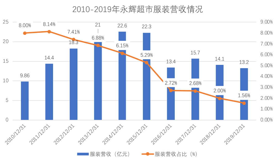 2010-2019年永輝超市服裝營收情況 制圖:乾行