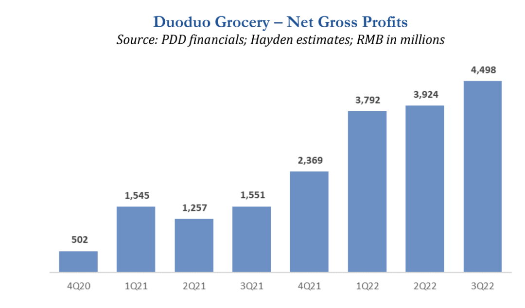 「多多買菜」的凈毛利估計(jì),資料來源:PDD 文件、HAYDEN CAPITAL
