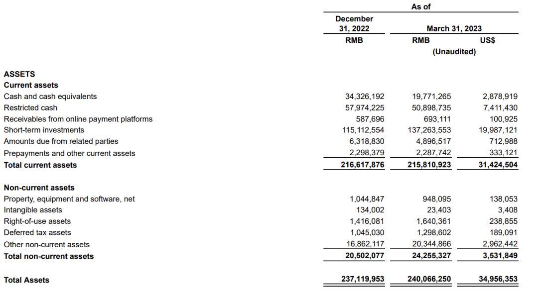 隨著多多買菜等渡過前期的燒錢階段步入正軌,2022 年以來拼多多凈利潤快速增長,由此帶來了大量的正向現(xiàn)金流。2022 年 Q2 到 Q4,拼多多運(yùn)營活動(dòng)的現(xiàn)金流入分別高達(dá) 74 億元、114 億元 和 485 億元,這使得拼多多賬面的資金(現(xiàn)金+短投)從 2021 年底的 930 億元,增加至 2022 年底的 1500 億元。