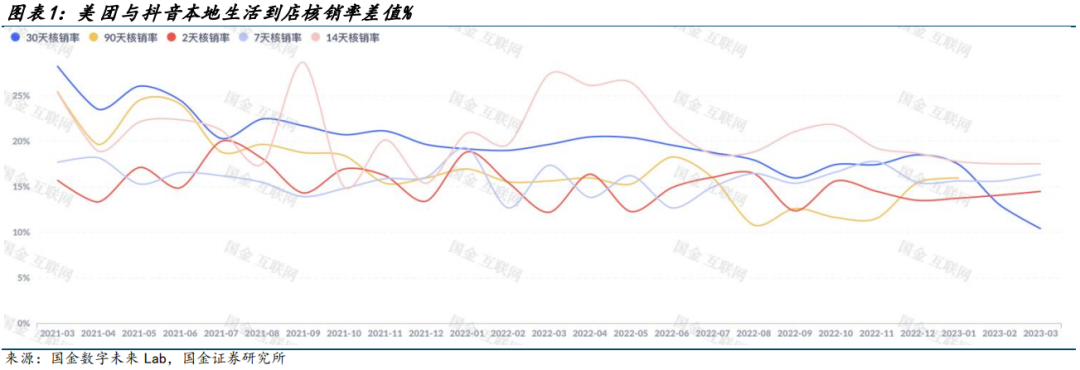 今年4月,國(guó)金證券在一份研報(bào)中指出了抖音和美團(tuán)的一個(gè)關(guān)鍵差距:核銷率。