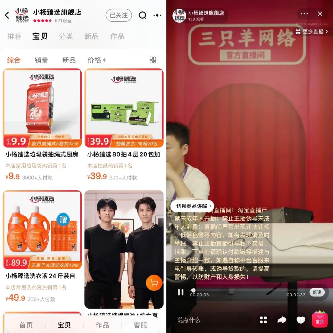 比如,瘋狂小楊哥背后的三只羊網(wǎng)絡(luò)已經(jīng)開設(shè)了“小楊臻選旗艦店”天貓店鋪,并開啟直播帶貨。