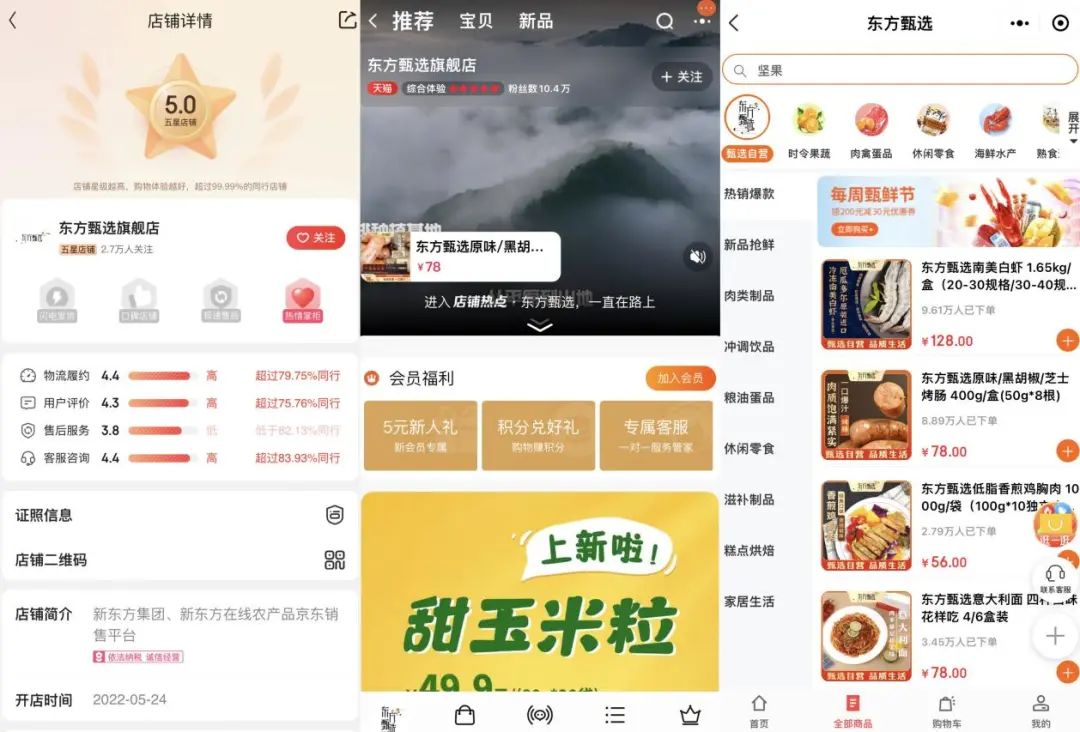 東方甄選APP、京東旗艦店、天貓旗艦店