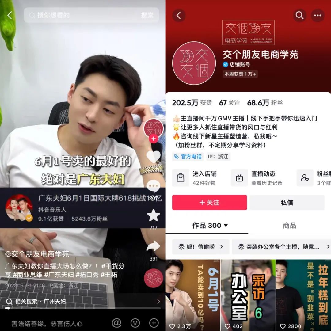 交個朋友電商學苑抖音主頁