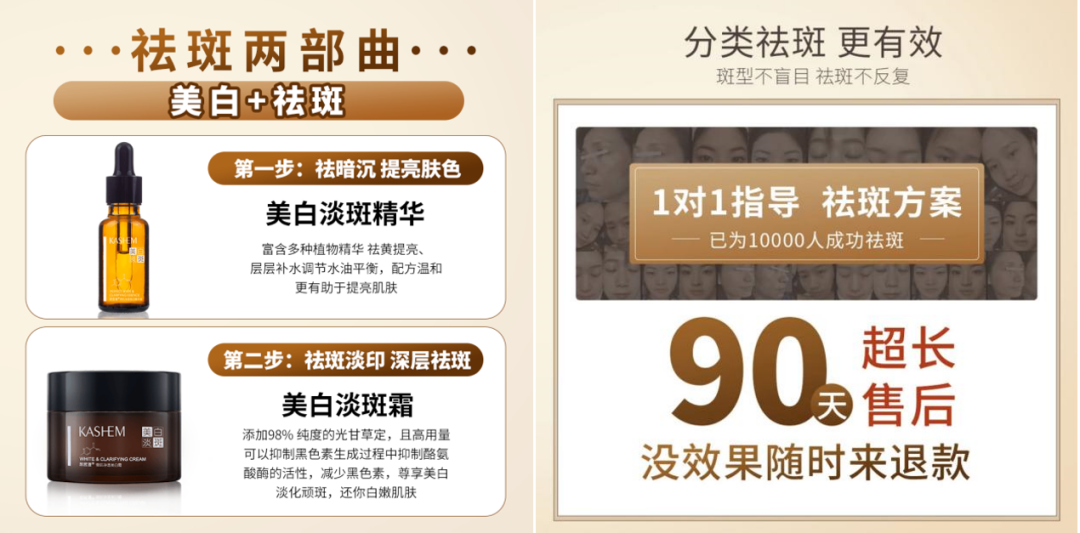 2022年11月1日,凱皙漫在上述網(wǎng)店內(nèi)上架了一款“凱皙漫雪肌凈透美白霜”和“凱皙漫雪肌凈透美白精華液”組合,并在商品頁面內(nèi)上傳了“1對1指導(dǎo)祛斑方案已為10000人成功祛斑”、“淡斑嫩白改善暗沉已有1000+成功案例”等廣告宣傳內(nèi)容,而實際當(dāng)事人無法提供上述數(shù)據(jù)的證明材料。