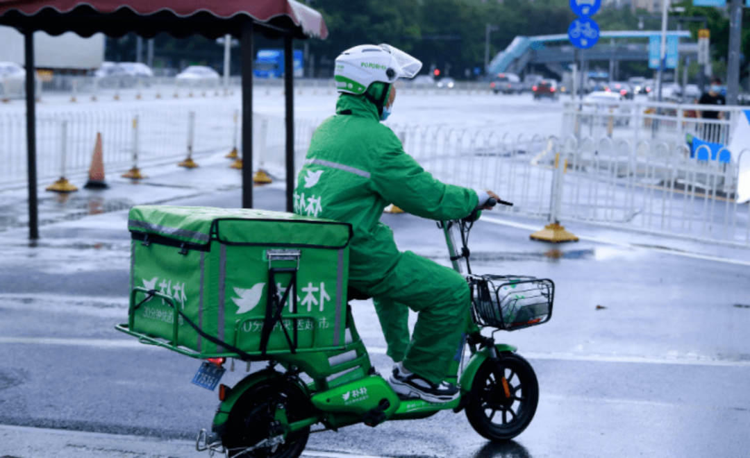 樸樸超市的配送員就格外引人注意,除了那抹特別的綠色,還有相比同行更碩大的配送箱,這與前置倉面積大同理,為了放下更多貨物。