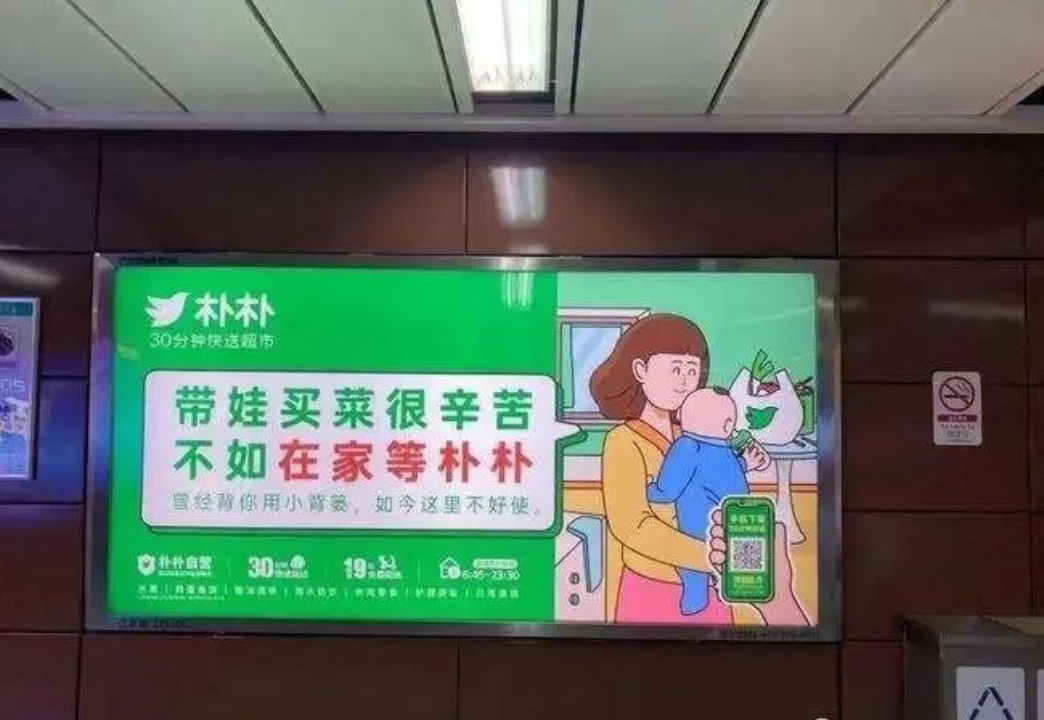 用朗朗上口如順口溜般的廣告語,如“帶娃買菜很辛苦,不如在家等樸樸”“盡情去跳廣場舞,買菜可以用樸樸”等,以及在顯眼的公交、地鐵等客流量密集處投放大屏廣告,能快速戳中寶媽、中老年等精準(zhǔn)受眾的心理。
