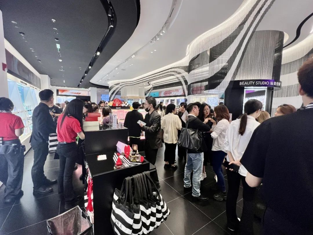 工作日的下午,這條街區(qū)熙熙攘攘,絲芙蘭門店里已經(jīng)擠滿了人!禙Beauty未來跡》觀察到,除了開店首日參加開業(yè)活動(dòng)的媒體和工作人員之外,其實(shí)有大部分都是路過的消費(fèi)者,其中還有一部分是一小時(shí)后即將參加“尊美絲享會(huì)”的絲芙蘭金卡會(huì)員。
