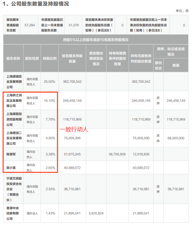 申通快遞此前公布的2022年報顯示,目前公司控股股東為陳德軍和陳小英。在前十大股東中,恭之潤、德殷投資、德潤二、陳德軍、陳小英及磐耀通享3號為一致行動關(guān)系,共計持股36%左右。