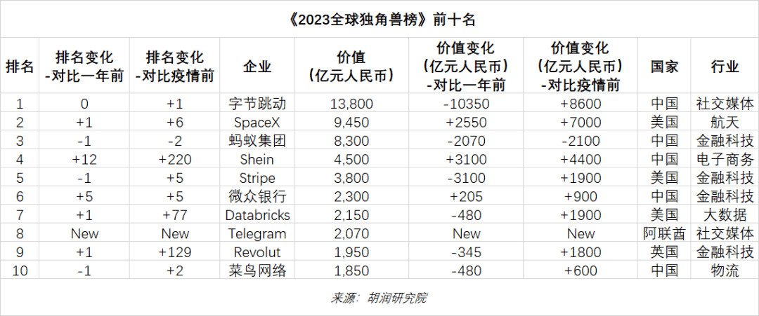 此前胡潤研究院發(fā)布的《2023全球獨角獸榜》顯示,菜鳥憑借1850億元人民幣的價值位列榜單第十。