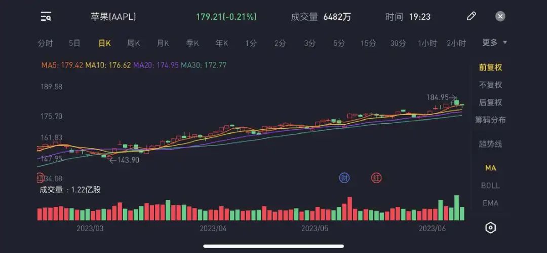 圖/蘋果美股走勢(shì)圖 來源/老虎證券 燃次元截圖