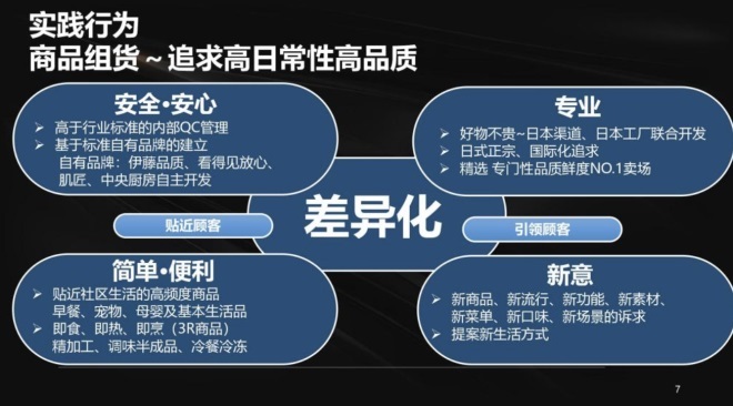 第三是專業(yè)。伊藤洋華堂是一家日本企業(yè),致力于在日本商品的結(jié)構(gòu)和內(nèi)容中深挖,做小而精、窄而深的商品。在壽司、刺身、日本酒、牛肉等日本特色品上,能夠比傳統(tǒng)的、既有的供應(yīng)商更加專業(yè),在這個領(lǐng)域中體現(xiàn)出我們的專業(yè)性。