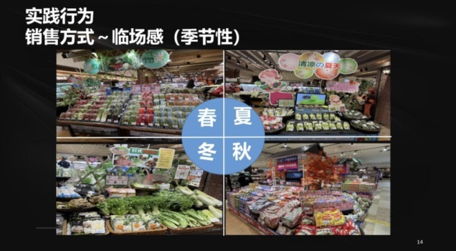 比如,我們圍繞24節(jié)氣用52周MD打造賣場,讓賣場一直保持新奇、有趣。為了能夠讓顧客摸到、觸到、聞到、聽到,感覺到這樣的生活體系,我們還做了很多現(xiàn)場演繹和試吃運(yùn)動,以此傳遞商品價值。