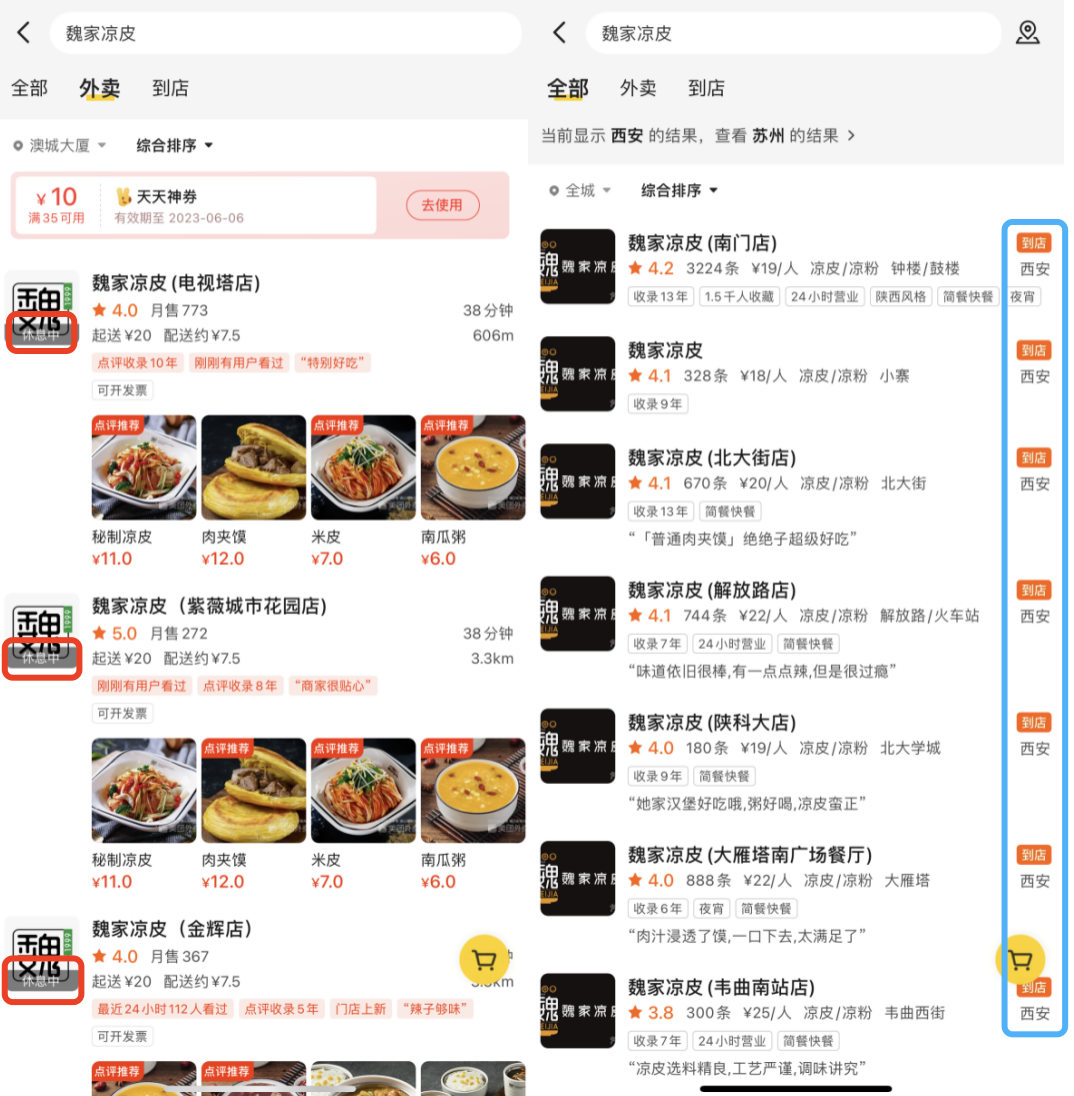 近日,“魏家涼皮下架美團(tuán)”一事引發(fā)行業(yè)關(guān)注。筆者使用美團(tuán)APP搜索發(fā)現(xiàn),頁(yè)面內(nèi)只有魏家涼皮門(mén)店分布、營(yíng)業(yè)時(shí)間等資訊呈現(xiàn),西安、蘭州等地門(mén)店僅提供到店服務(wù),且門(mén)店已被設(shè)置成休息中或已打烊模式,無(wú)法再通過(guò)外賣點(diǎn)餐。