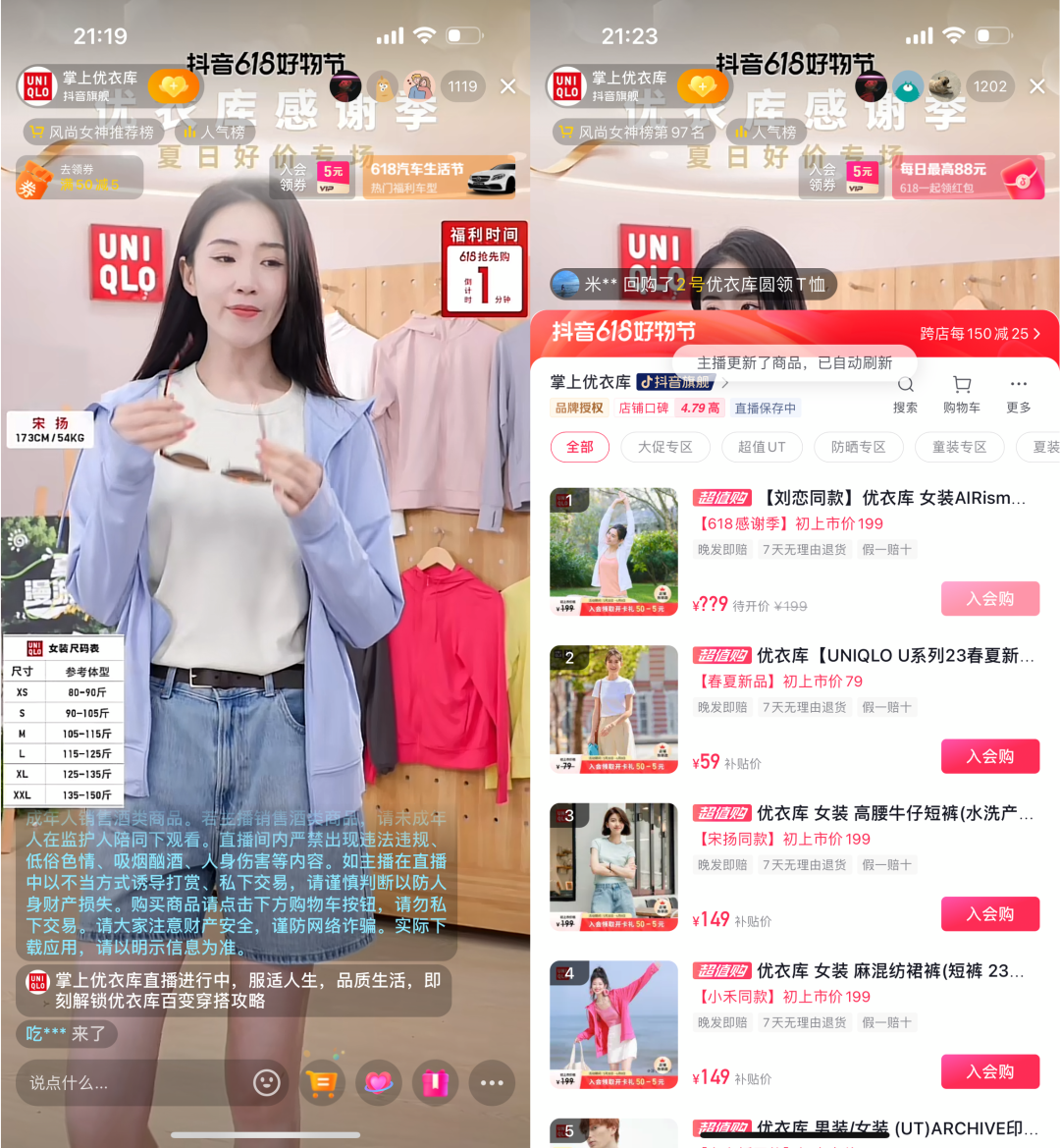 再比如優(yōu)衣庫也正在加速直播電商布局。其抖音的官方賬號(hào)開啟直播帶貨,并建立多個(gè)賬號(hào)形成矩陣。618期間也在大力直播。