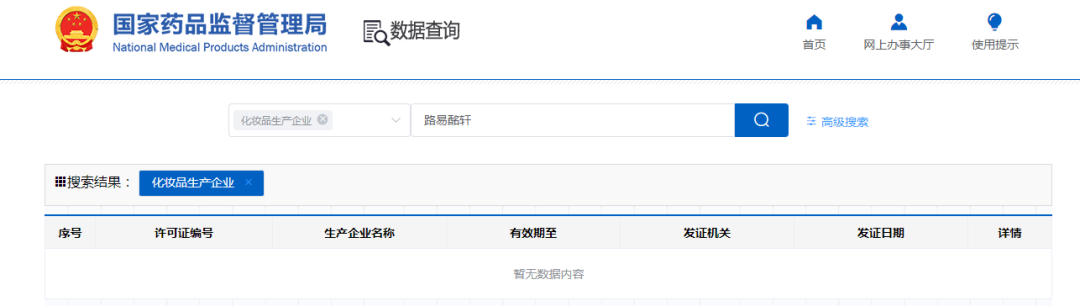 此外,青眼在國(guó)家藥監(jiān)局中以“路易酩軒”“路威酩軒香水化妝品(上海)有限公司”等為關(guān)鍵詞檢索,尚未發(fā)現(xiàn)相關(guān)化妝品生產(chǎn)企業(yè)許可證的信息。
