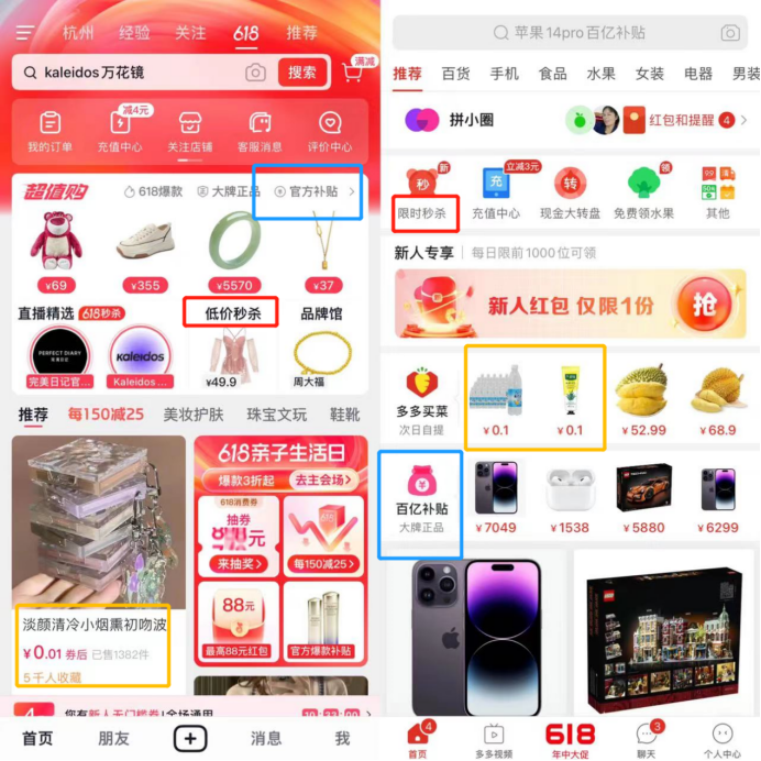 最近一年,抖音曾對貨架電商做出過探索,依賴用戶的主動搜索,即“人找貨”,F(xiàn)在打開抖音主頁的商城頻道可以發(fā)現(xiàn),商城與傳統(tǒng)貨架電商已經(jīng)別無二致。而首頁信息重點(diǎn)突出的“低價(jià)秒殺”、“0.01元券后”、“官方補(bǔ)貼”,也不禁讓人懷疑,這真的不是拼多多嗎?
