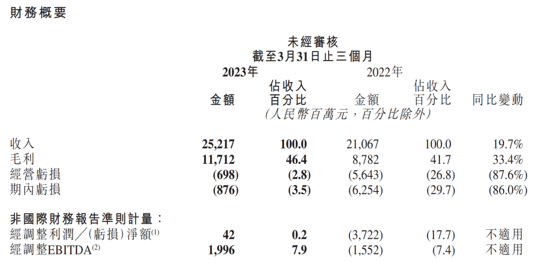 圖:快手2023Q1財務(wù)概要。來源:企業(yè)財報