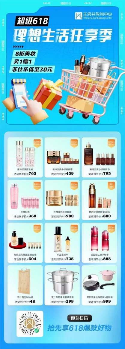 通過集團全渠道中心、招商中心和各業(yè)態(tài)門店的通力配合,集團率先開啟了本次618主題消費季活動,首創(chuàng)“王府井好物心選節(jié)”IP,聯(lián)動眾多重點品類、品牌供應(yīng)商聯(lián)合推薦優(yōu)質(zhì)商品和驚喜活動。本次王府井好物心選節(jié)主題活動為期一個月,還將緊密結(jié)合父親節(jié)、端午節(jié)等多個市場熱點消費節(jié)日,開展適合各類消費群體的特色營促銷活動和互動體驗,帶動消費者的購物熱情,樹立王府井品牌的市場形象,提升集團品牌的市場影響力。