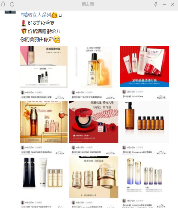 成都、長沙、西安、西寧、包頭等地重點區(qū)域門店積極組織618特色商品,調(diào)動全體員工充分利用朋友圈等自媒體渠道開展618商品分銷工作,推薦重點品牌菲仕樂、蘭蔻、雅詩蘭黛等618專屬商品活動,以及為消費者種草符合門店所在地區(qū)流行趨勢的商品亮點和促銷活動,通過員工社交網(wǎng)絡(luò)提高宣傳聲量,“以點帶面”提前鎖定成交的可能性,全力沖刺618銷售業(yè)績再攀高峰。