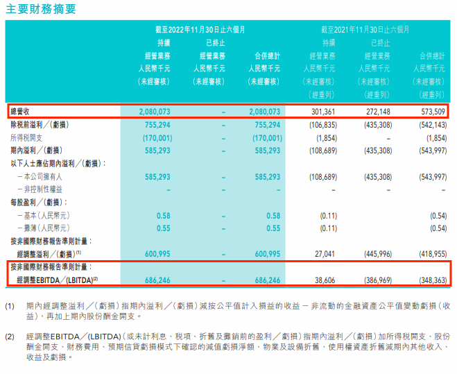 東方甄選(新東方在線)2023財(cái)年中期報(bào)告顯示,截至2022年11月30日止6個(gè)月,東方甄選總營收20.8億元人民幣,同比增長265%;經(jīng)調(diào)整EBITDA達(dá)到6.86億元,實(shí)現(xiàn)扭虧為盈。