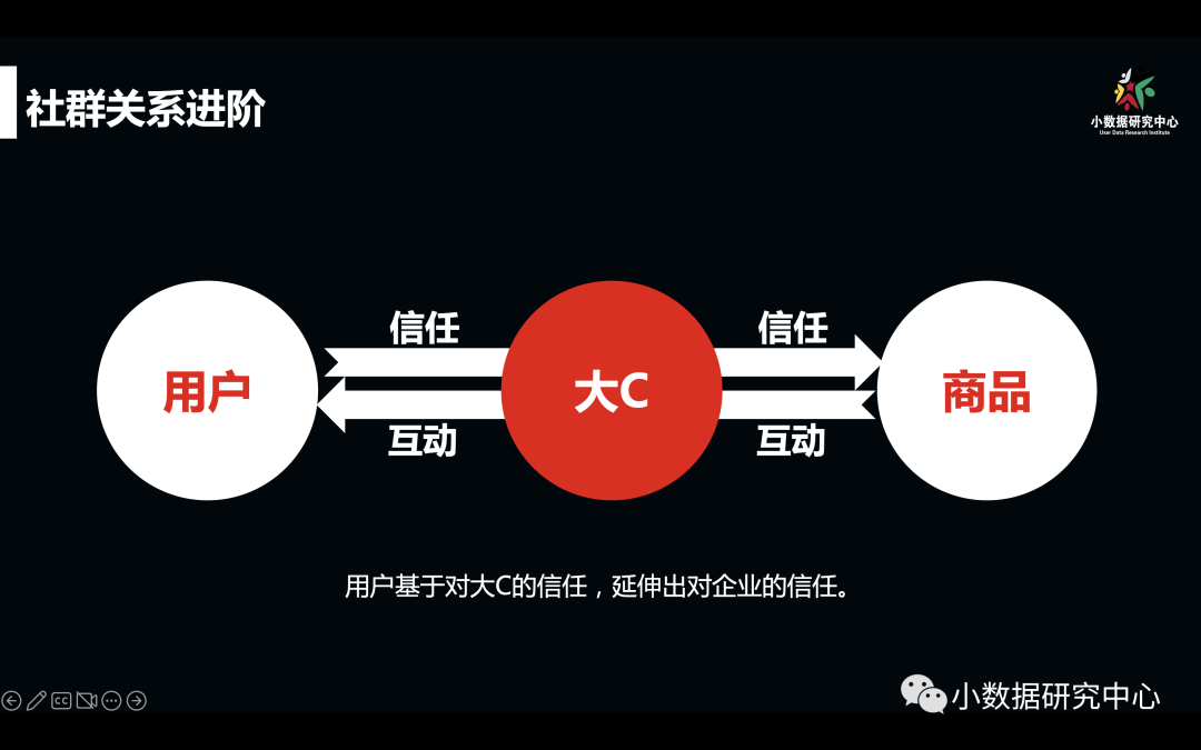 DTc的優(yōu)勢雖然可以直接地與用戶互動,但在中國還有很多企業(yè)沒有具備與終端消費(fèi)者直接互動的營銷服務(wù)能力,在終端消費(fèi)者與企業(yè)之間存在一個群主(超級用戶或?qū)з彛,我們稱為大C,他們就像橋梁一般的存在,為企業(yè)和消費(fèi)者建立了一種連接,而這種商業(yè)模式就是DTC,這個大C是服務(wù)著一定數(shù)量的小c,而DTC企業(yè)往往會提供數(shù)據(jù)、內(nèi)容、供應(yīng)鏈資源賦能大C,從而更好地服務(wù)小c,攜手走向成功的彼岸。