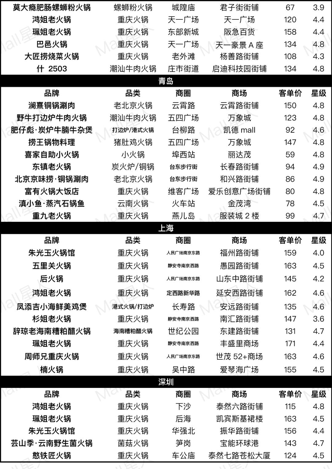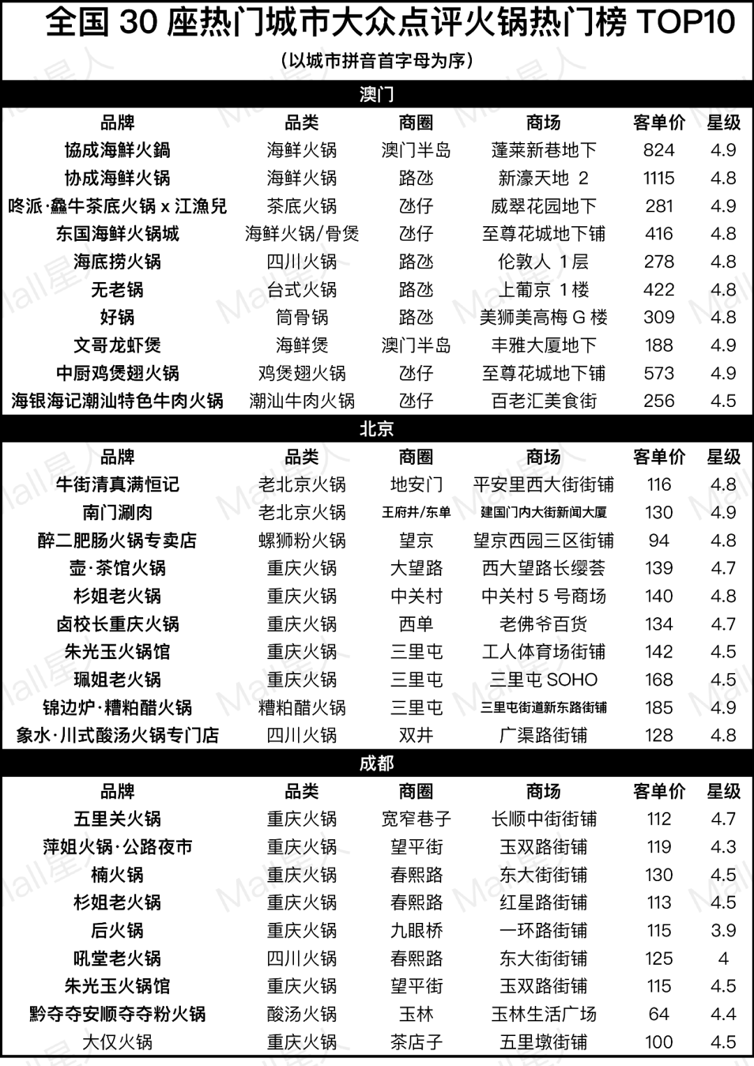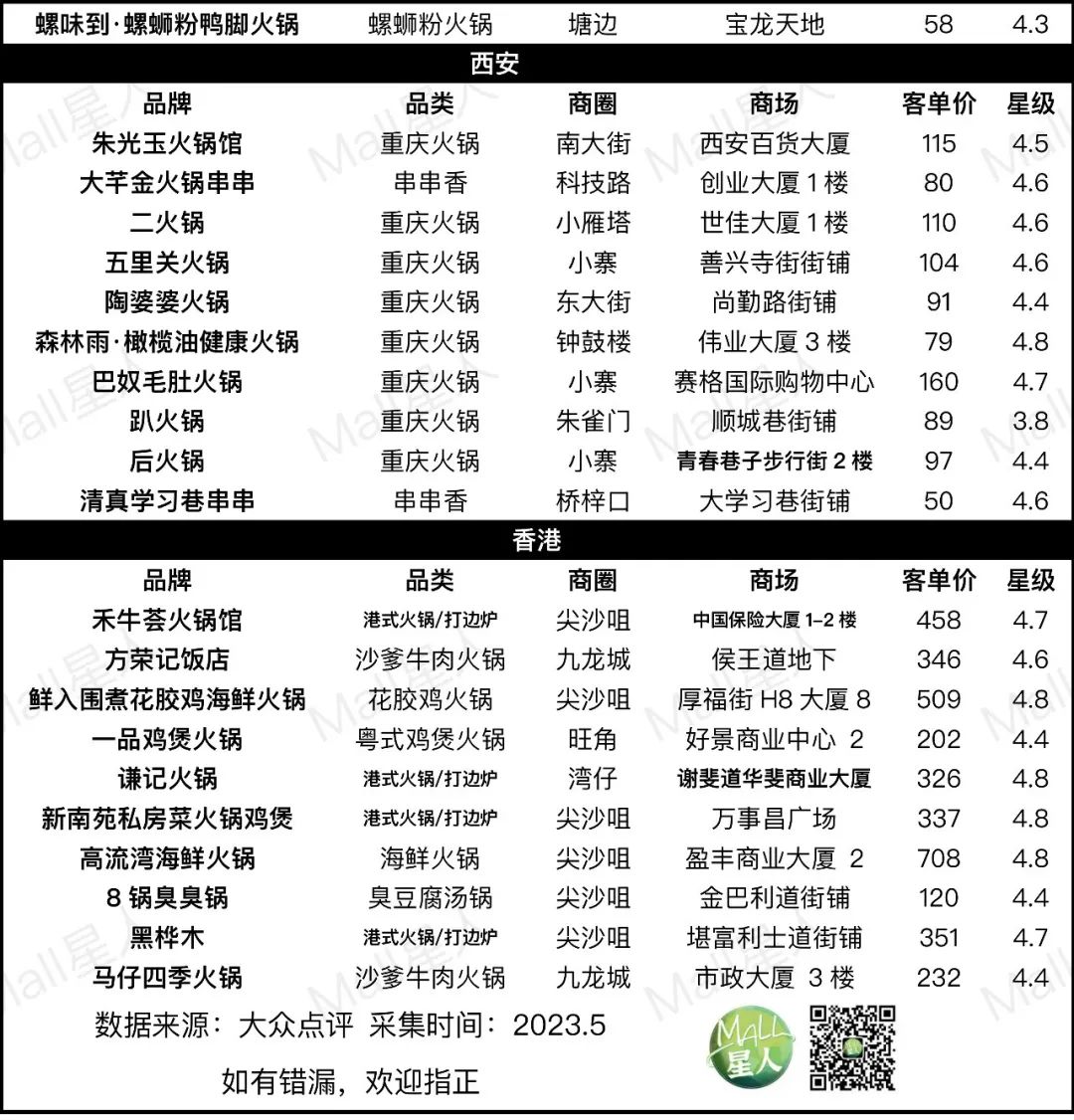 Mall星人通過對熱門火鍋品牌和數(shù)據(jù)的梳理,嘗試回答這些問題(文末附30座熱門城市樣本數(shù)據(jù))。