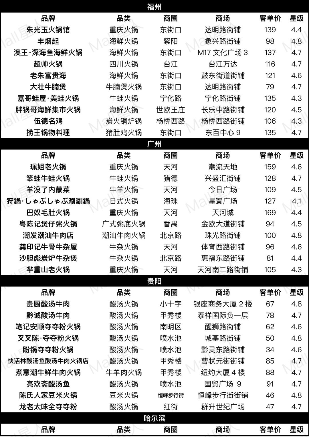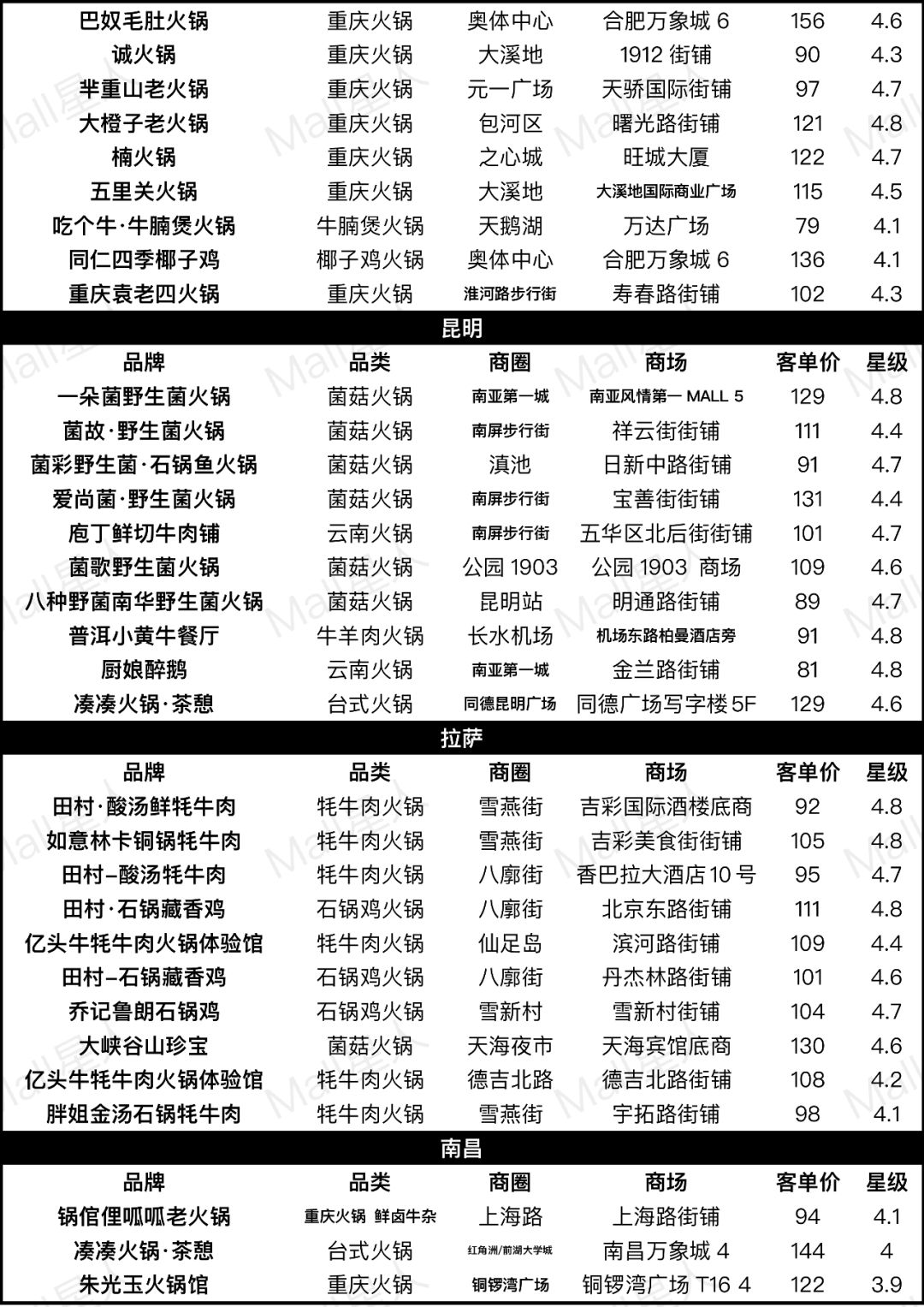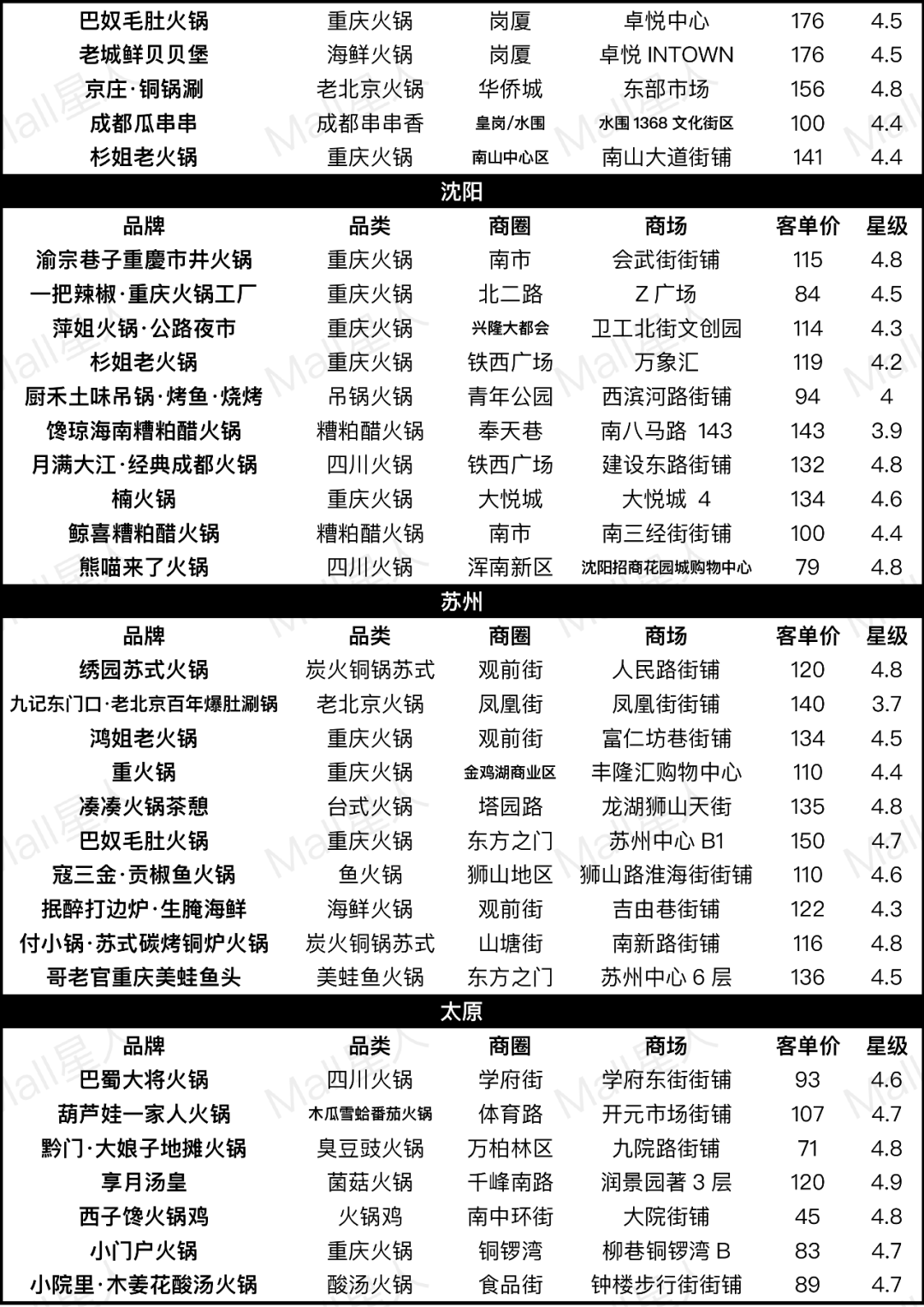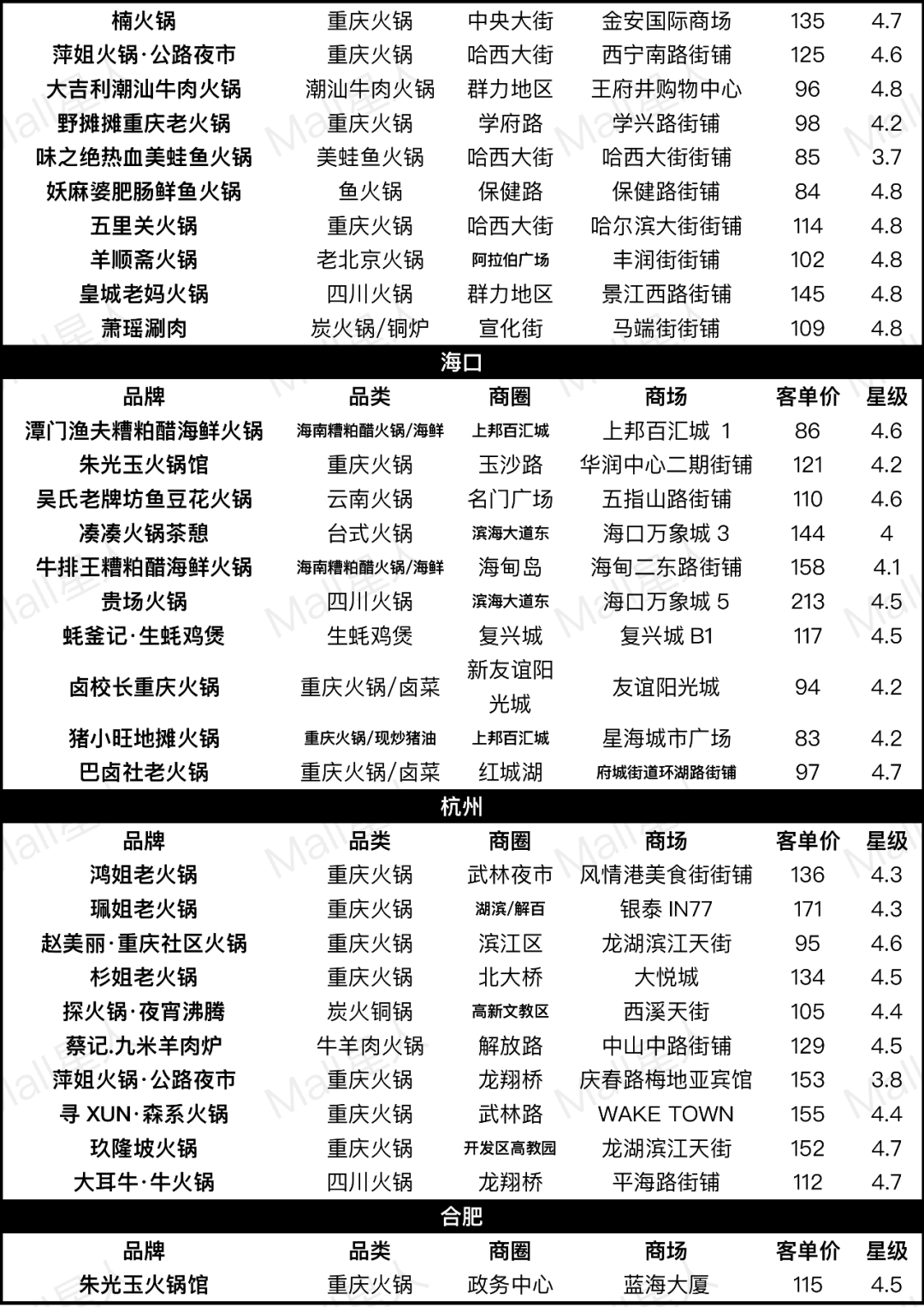 Mall星人通過對熱門火鍋品牌和數(shù)據(jù)的梳理,嘗試回答這些問題(文末附30座熱門城市樣本數(shù)據(jù))。