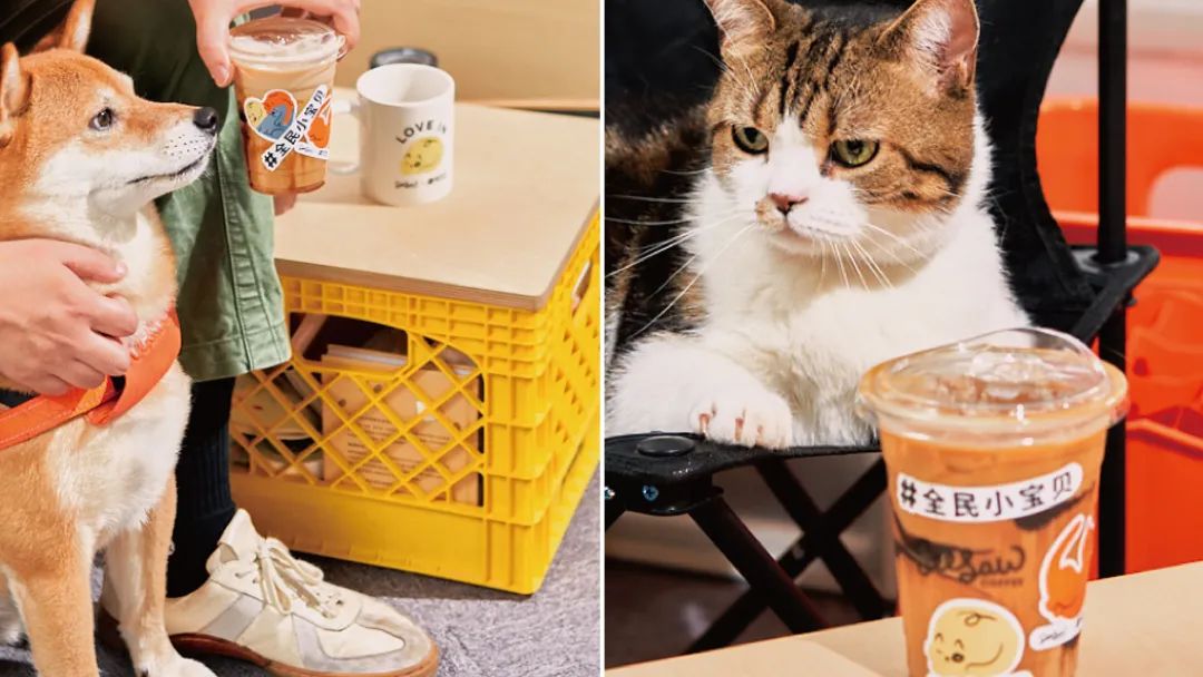 SeeSaw咖啡與植物標簽聯名的寵物友好門店,推出兩款“全民小寶貝”限定特調,即“柴柴焦糖燕麥拿鐵”和“虎斑巧巧燕麥拿鐵”,拿鐵上分別放著柴犬和貓咪形狀的棉花糖,十分可愛。