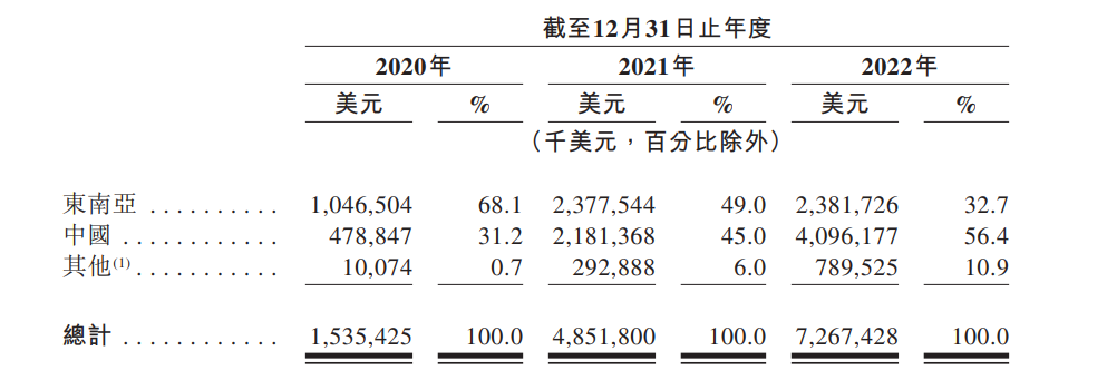 雖然極兔2020年3月才在國內(nèi)起網(wǎng),但三年以來,中國市場收入占比已經(jīng)從31.2%躍升至56.4%,超越了過去提供七成收入來源的東南亞市場。