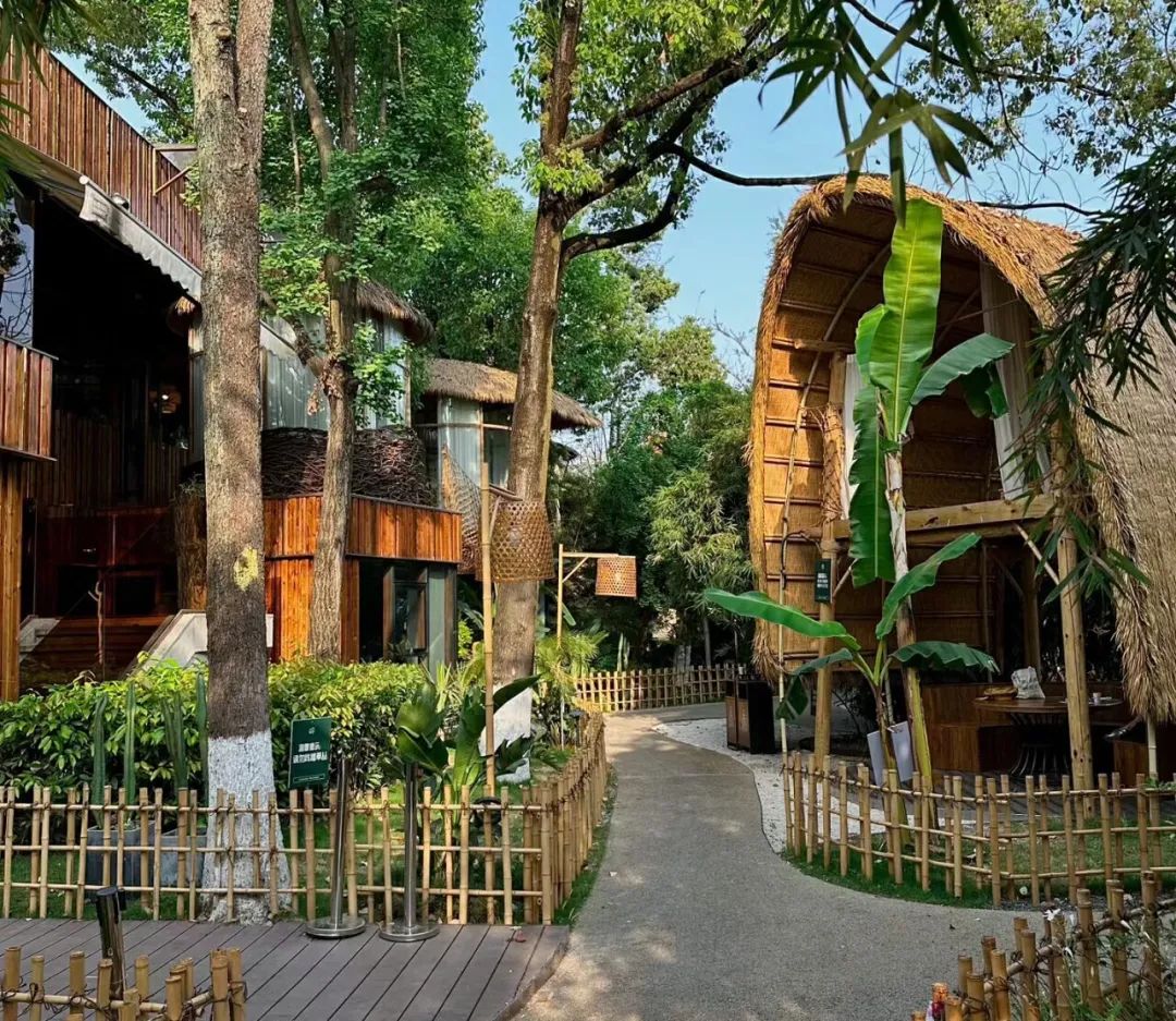 有博主稱它是“沉浸式東南亞森林風”,度假氛圍拉滿,火鍋店完全跟公園融合到了一起,仿佛置身熱帶雨林。它總共分為兩層,一樓里外都可以坐,二樓鳥巢設(shè)計,還設(shè)置有禮堂式的包間,可以坐50來人。