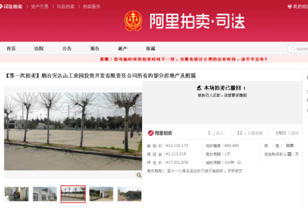 次年,煙臺完達(dá)山工業(yè)園投資開發(fā)有限責(zé)任公司被爆出資金鏈斷裂,拖欠員工、經(jīng)銷商、供應(yīng)商多方欠款,背負(fù)高達(dá)近1億元債務(wù)。甚至在2019年,煙臺完達(dá)山的部分建筑物、房產(chǎn)還到了公開拍賣的地步,將拍賣所得用于償還拖欠的貨款和工資等債務(wù)。