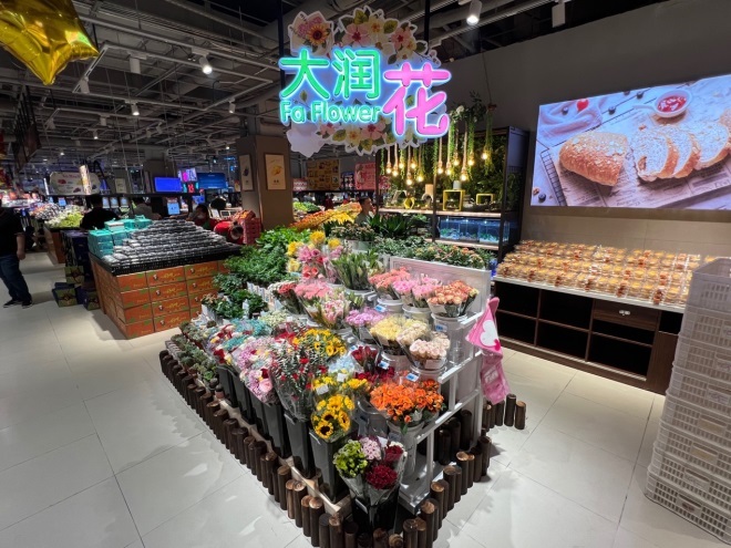 開業(yè)第一天,店內上新大潤發(fā)的特色商品RT100近100款好物,包括香烤雞翅包飯、臺灣風味腸、棗泥核桃糕、瑞士卷、呷無忌小青檸、薈尚大米等。還有自有品牌呷無忌、薈尚、潤發(fā)優(yōu)質系列好物也在賣場進行了集中陳列,方便顧客選購,同時帶來大潤發(fā)新鮮出爐的鮮花品牌“大潤花”。