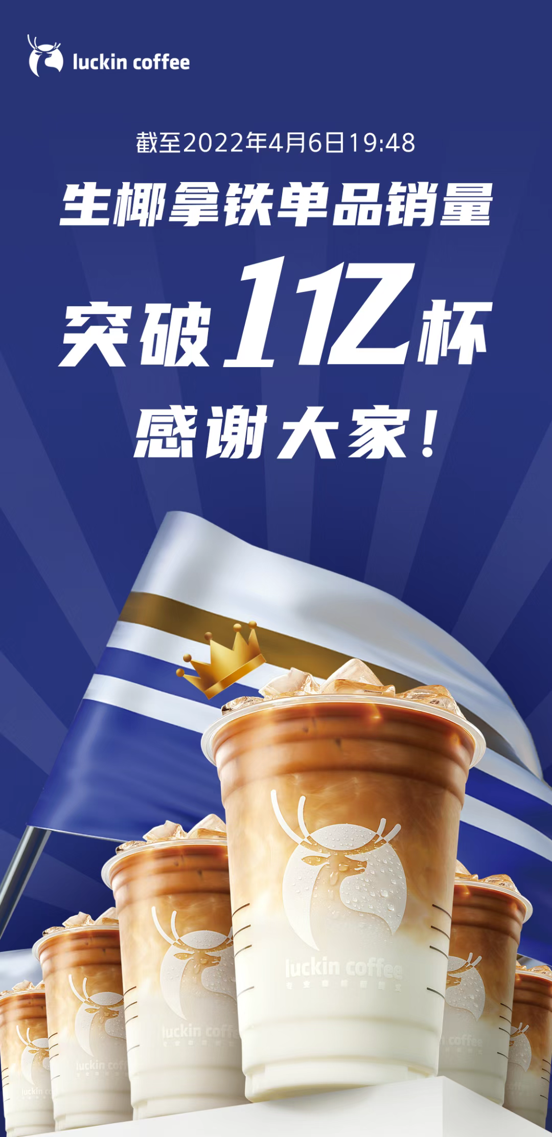 讓椰子重獲新生的關(guān)鍵節(jié)點(diǎn)是【生椰拿鐵】。瑞幸在2022年4月高調(diào)宣布“生椰拿鐵單品銷量突破1億杯”,并且因?yàn)榭偸琴u光出現(xiàn)了“高管都去海南摘椰子”的梗。