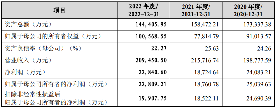 數(shù)據(jù)顯示,2020年-2022年,環(huán)亞總營收分別為19.9億元、21.6億元和20.9億元,2021-2022年同比分別增長8.5%、下滑2.9%。3年來,公司歸母凈利潤也經(jīng)歷了跌與漲,去年為2.28億元,取得了增長。
