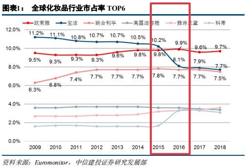 瘦身計劃讓寶潔成功去弱存強(qiáng)、聚焦核心業(yè)務(wù),但也帶來了一個無法回避的“副作用”,即直接導(dǎo)致市場份額的下滑,Euromonitor數(shù)據(jù)顯示,2016年寶潔在全球化妝品行業(yè)的市占率被歐萊雅反超。
