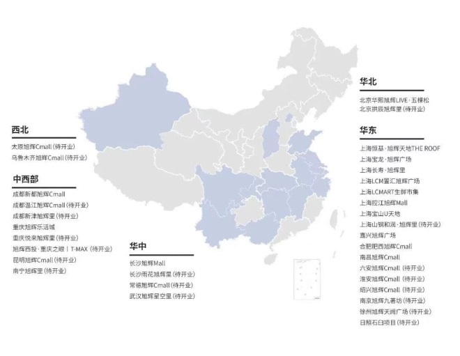 截至目前,旭輝商業(yè)已進駐全國17座城市,布局項目達30個,總面積超270萬㎡。從商業(yè)拓展版圖上看,其主要布局在一線城市及潛力城市,已實現(xiàn)華東、華中、華北、西北和中西部全覆蓋的全國化布局。