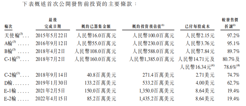 招股書(shū)顯示,2019年D輪融資成本為每股4美元,投后估值5.33億美元。E輪融資的每股成本為8.64美元。在E輪兩次融資后的估值為14.35億美元。三年時(shí)間,估值已經(jīng)是此前的兩倍多。