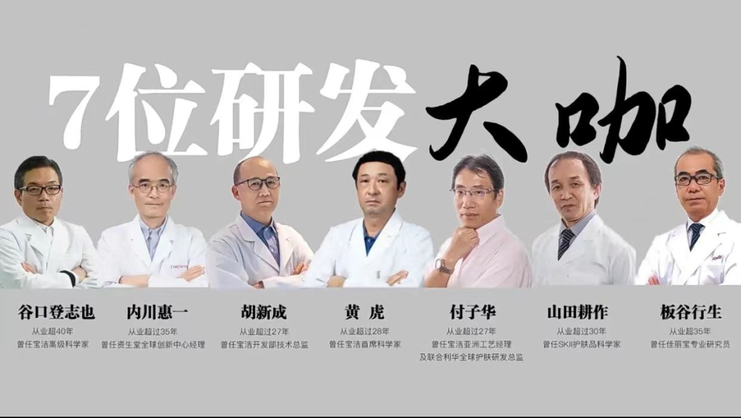 2021年,前寶潔首席科學(xué)家黃虎加入上美集團(tuán),成為上美全球研發(fā)中心的首席科學(xué)家。自此,上美組成了由7位不同國(guó)際大公司背景組成的全球研發(fā)領(lǐng)導(dǎo)核心。在這七位科學(xué)家中,黃虎、胡新成、付子華等5位科學(xué)家都有在寶潔集團(tuán)任職的經(jīng)歷。