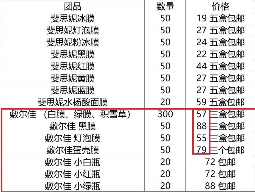 其中,以團購價為例,鋅刻度從多位“團長處”了解到,各個團的定價相差不大,敷爾佳白膜的價格為55元-60元一盒,黑膜的價格則為83元-89元一盒。