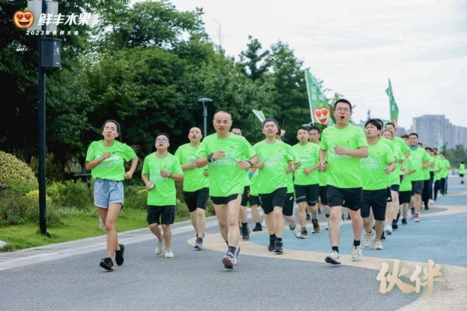 據(jù)悉,伙伴大會(huì)當(dāng)天清晨,鮮豐水果還發(fā)起了“百人樂跑·迎亞運(yùn)”活動(dòng),在董事長(zhǎng)韓樹人帶領(lǐng)下,來自全國(guó)各地的鮮豐生態(tài)伙伴們齊聚錢塘江畔的杭州奧體中心主體育場(chǎng)(大蓮花),迎著朝陽(yáng)揮灑汗水,傳遞綠色健康的生活理念。